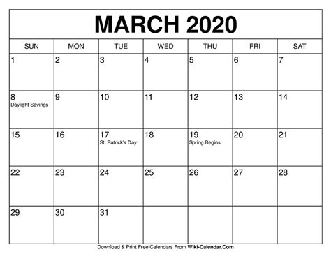 March 2020 calendar free printable monthly calendars